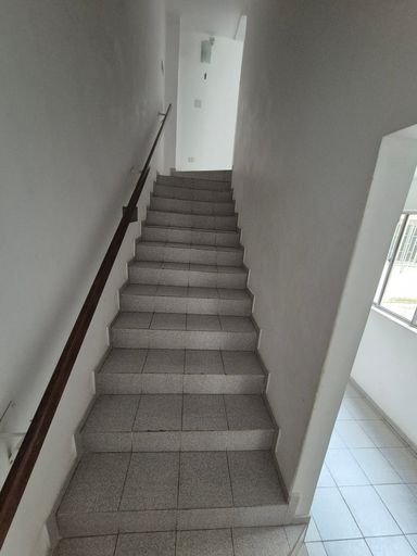 Apenas um lance de escada ou dois se vier do estacionamento.