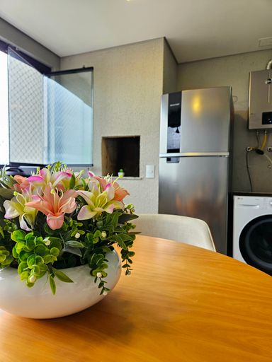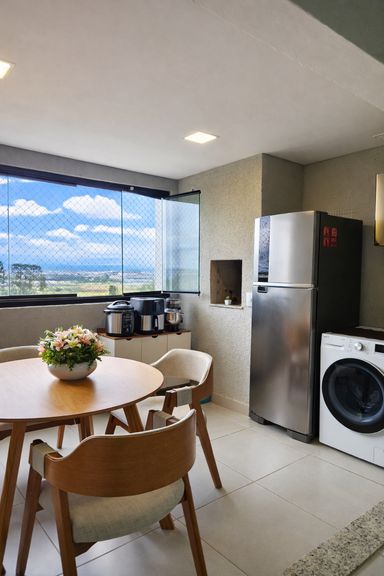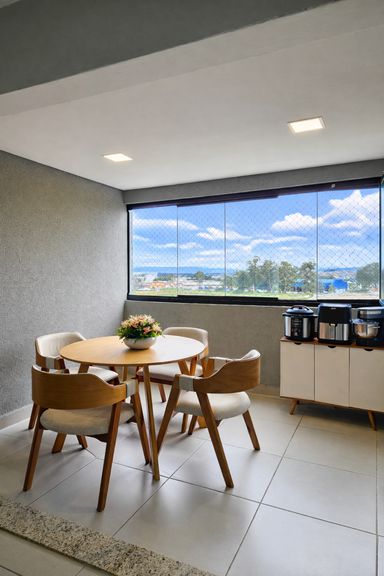 A sacada integrada com fechamento em vidro no sistema reiki amplia o ambiente e cria um espaço versátil para receber amigos ou aproveitar momentos de descanso. O destaque fica para a churrasqueira a carvão, perfeita para quem valoriza bons momentos em casa.