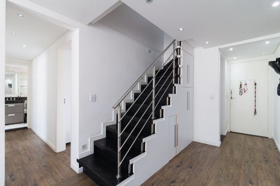 No primeiro andar - Cozinha , sala de jantar e quartos (área íntima) (neste andar um banheiro no corredor e um banheiro da suíte)